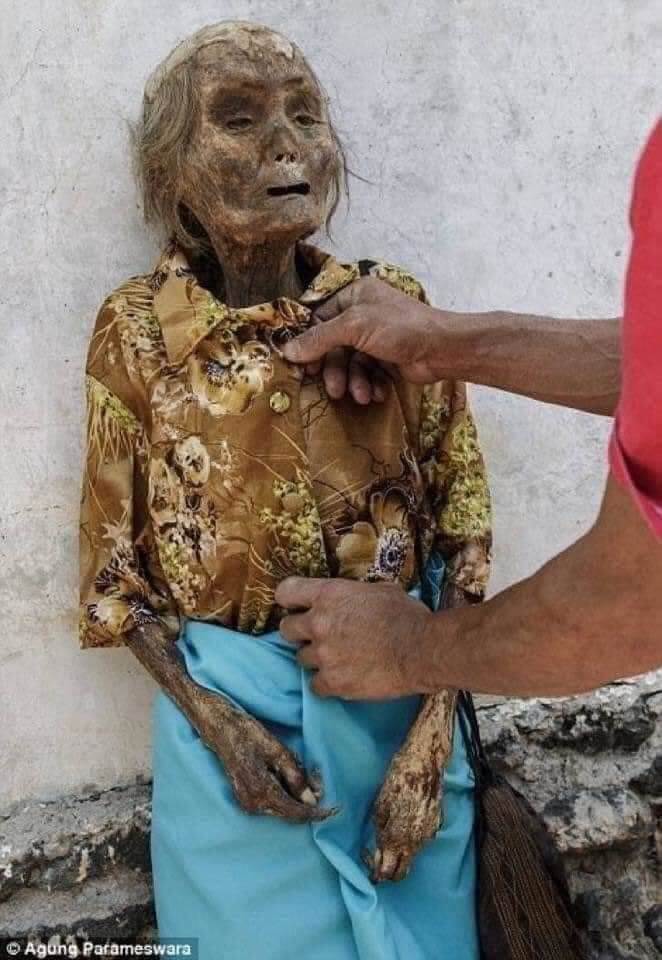طقس غريب يقوم به أهل قرية توراجا، إندونيسيا، حيث يستخرجون جثث موتاهم من قبورها ويقومون بغسلها وتزيينها وإلباسها ملابس جديدة، يصنعون لها توابيت جديدة ويطوفون بها أنحاء القرية في خط مستقيم.