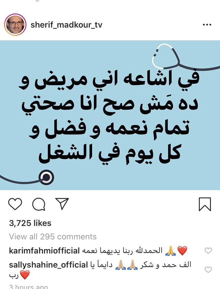علق الإعلامي شريف مدكور، علي ما تردد عن مرضه، قائلا: " في إشاعة أني مريض وده مش صح انا صحتي تمام وبروح الشغل كل يوم" وذلك علي صفحته الشخصية بموقع التواصل