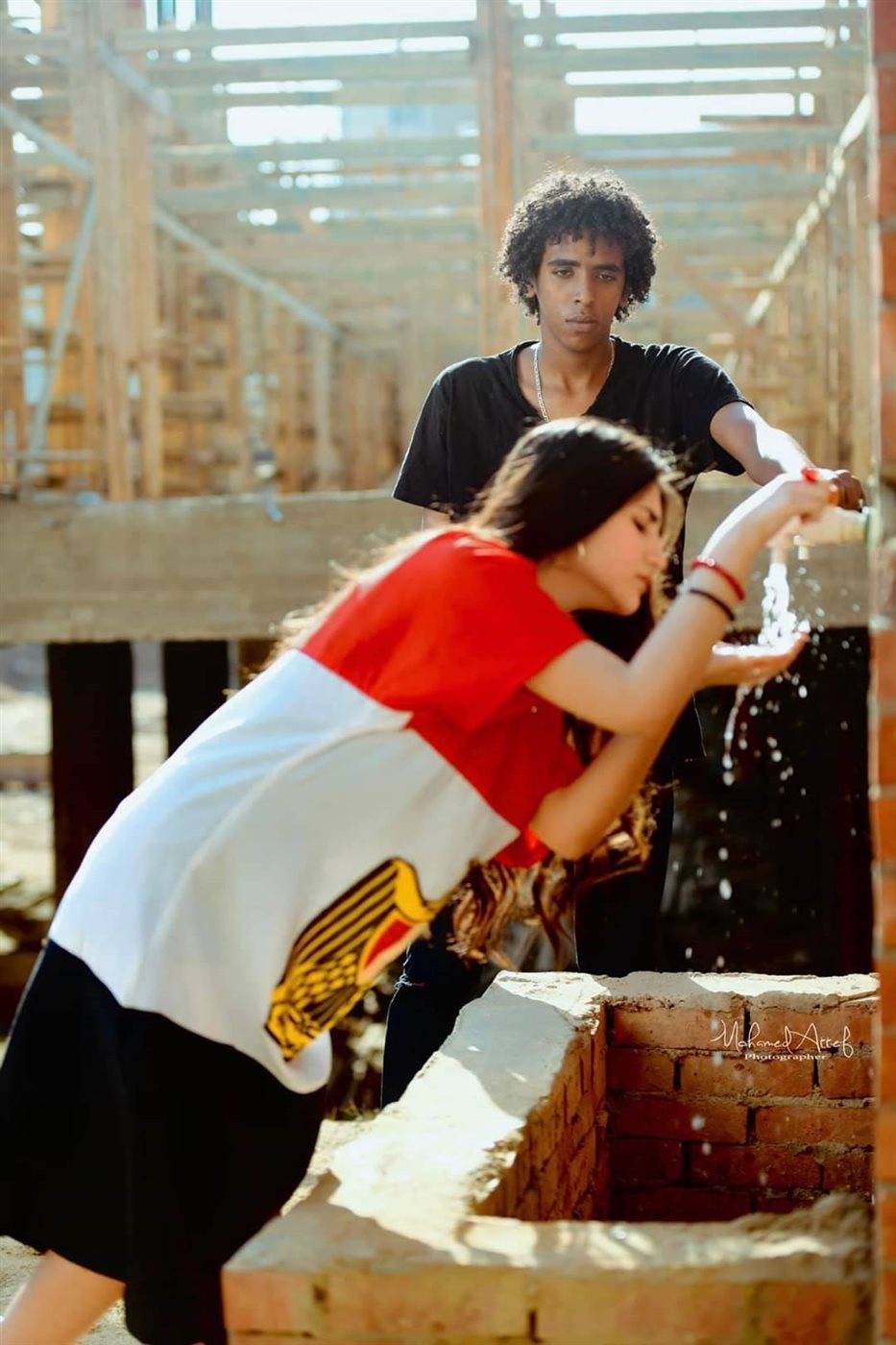 وأوضح عاطف أن الصورة بألف كلمة، وما تعجز الكلمات عن توضيحه تستطيع الصورة أن تشرحه بسهولة، وهذا ما قرر فعله من خلال عمل جلسة تصوير استعان فيها ببضعة أطفال تتراوح أعمارهم ما بين ٨ سنوات و١٤ سنة، حيث شرح لهم أن هناك دولة تريد قطع الماء عن مصر وبالتالي سيؤثر علينا في الشرب والزراعة ولن نتمكن من فعل كل ذلك وغيره واستوعب الاطفال الفكرة تماما وقاموا بتمثيل ما طلبه منهم.