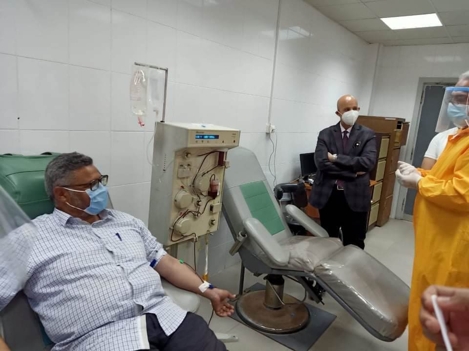 قدم الدكتور هشام شوقي مسعود وكيل وزارة الصحة بالشرقية الشكر لأحمد الشناوي، الذي يعد أول متبرع بالبلازما من متعافي فيروس “كورونا” المستجد "كوفيد ١٩"، بمحافظة الشرقية، وذلك بعد اعتماد الشرقية ضمن عدد من محافظات الجمهورية كمركز إقليمي لسحب بلازما الدم من المتعافين من فيروس “كورونا”، ودعم الدكتورة هالة زايد وزيرة الصحة والسكان، المحافظة- أمس- بجهاز سحب البلازما، ضمن خطة الوزارة لمجابهة فيروس كورونا المستجد "كوفيد ١٩"، واستخدام بلازما المتعافين في علاج مصابي فيروس كورونا.