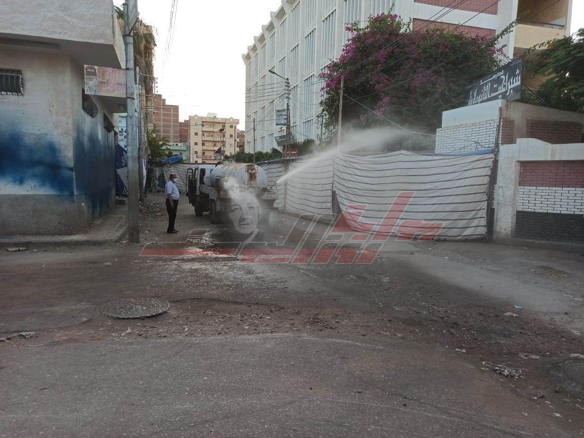 البحيرة تواصل أعمال رش وتطهير الشوارع والمنشآت
