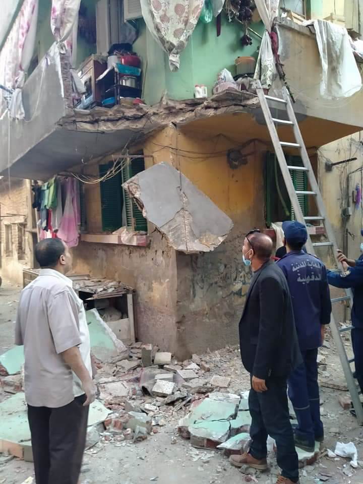 وكانت غرفة الكوارث برئاسة حي شرق المنصورة، تلقتربلاغًا بانهيار جزء من شرفة عقار بمنطقة عزبة عقل.