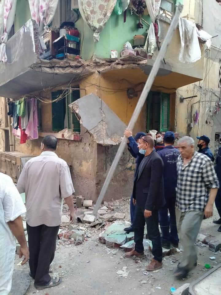 وتم إجراء معاينة للعقار، وإزالة موطن الخطورة، وعرضه على لجنة المنشآت الآيلة للسقوط لتحديد اللازم، وتحرر محضر بالواقعة.