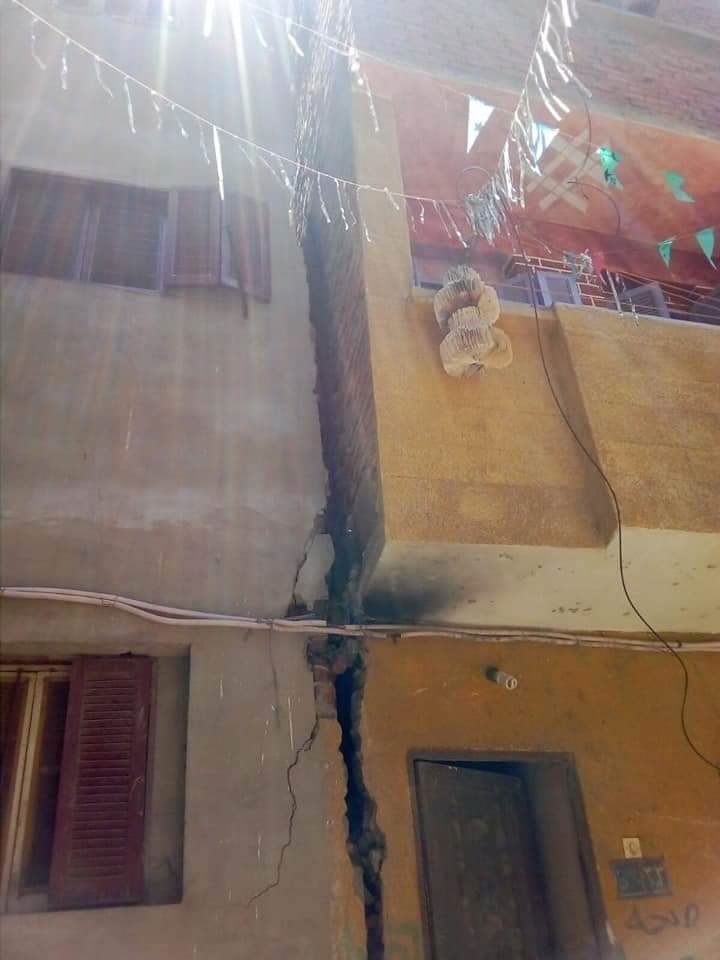 وبالمعاينة تبين أن العقار مكون من طابقين، ومبني من الطوب اللبن، وحدث به تصدعات وشروخ أدت لانهيار أجزاء منه.