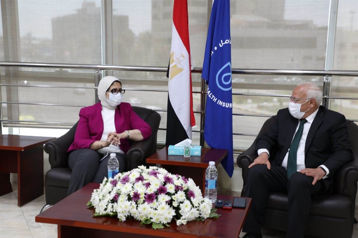 تراست الدكتورة هالة زايد وزيرة الصحة والسكان، اليوم الثلاثاء، واللواء عادل الغضبان محافظ بورسعيد، اجتماع هيئة الرعاية الصحية الشاملة بمبنى هيئات التأمين الصحي الشامل ببورسعيد.