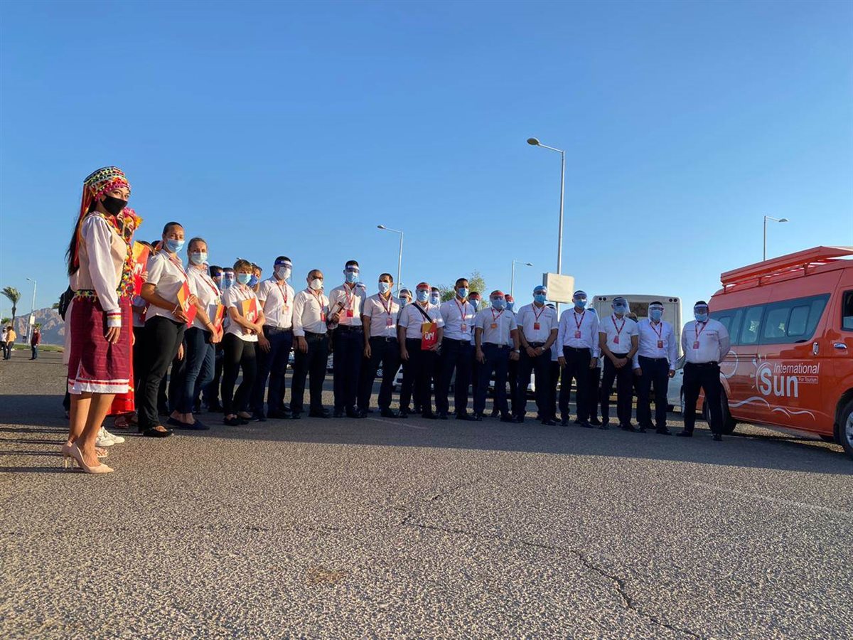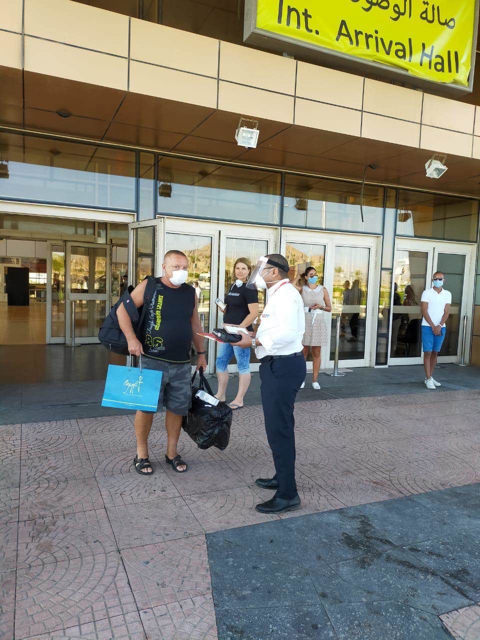 وكان في استقبال الوفد في مدينة الغردقة مع اللواء عمر حنفي محافظ الغردقة، واللواء عادل محجوب رئيس الشركة المصرية للمطارات، المهندس أحمد يوسف رئيس الهيئة المصرية العامة للتنشيط السياحي، الذي رافقهم للفندق محل الإقامة للاطمئنان على إجراءات التسكين والإقامة الخاصة بهم، والتأكد من تطبيق كافة ضوابط السلامة الصحية والإجراءات الاحترازية والاشتراطات الوقائية التي أقرتها وزارة السياحة والآثار واعتمدها مجلس الوزراء.