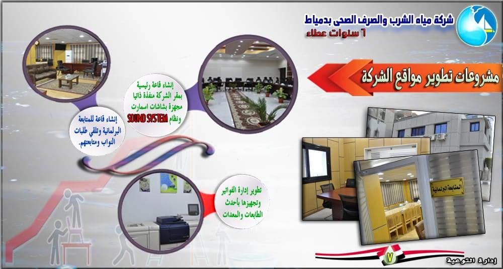 وأشار إلى خطة تطوير الأداء التي قامت بها الشركة لتحسين الخدمات المقدمة للمواطنين، والتي شملت تطوير أعمال داخل الشركة بتكلفة ٦٢٨ مليون جنيه، تضمنت تطوير ورفع كفاءة العديد من محطات وروافع مياه الشرب والصرف الصحي، وكذا شبكات المياه والصرف وتحديث عدد كبير من الآلات والمعدات بالشركة وبعضها منفذ ذاتيا، كما شمل ذلك إنشاء مركز خدمة عملاء مطور يعمل بالنظام المركزي المميكن، بالإضافة لتحديث ١٥ مركز خدمة عملاء أخرى قائمة بالمحافظة، وإنشاء مركز التدريب الإقليمي والمجهز بأحدث معدات التدريب والوسائل التعليمية والتوضيحية، وإنشاء قاعة مؤتمرات رئيسية بمقر الشركة منفذة ذاتيا ومجهزة بأحدث الأنظمة التكنولوجية، وكذلك إنشاء قاعة مخصصة للمتابعة البرلمانية لتلقي طلبات النواب ومتابعتها، وتطوير إدارة الفواتير وتجهيزها بأحدث الطابعات والمعدات والبرامج.