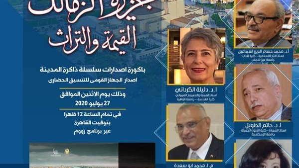 يعقد الجهاز القومي للتنسيق الحضاري برئاسة المهندس محمد أبو سعدة، حلقة نقاشية حول كتاب "الزمالك القيمة والتراث" باكورة إصدار سلسلة "ذاكرة المدينة" التي اطلقها الجهاز، وذلك في الثانية عشر ظهر يوم الاثنين ٢٧ يوليو ٢٠٢٠ عبر برنامج زووم ويدير النقاش الإعلامي الدكتور جمال الشاعر.