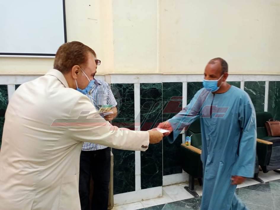 جبر الخواطر.. رئيس مدينة بالمنيا يشارك عمال النظافة الطعام ويوزع مكافآت .. صور