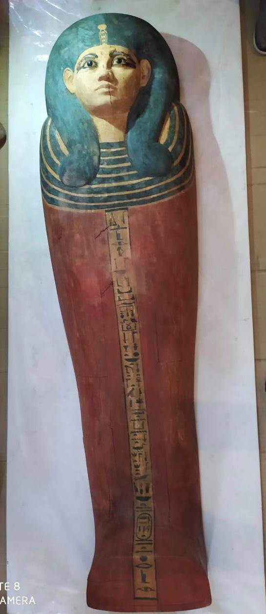 - تابوت الملكة أحمس نفرتارى زوجة الملك أحمس يبلغ إرتفاعة ٣٧٨ سم. عثر عليه في خبيئة الدير البحرى عام ١٨٨١.