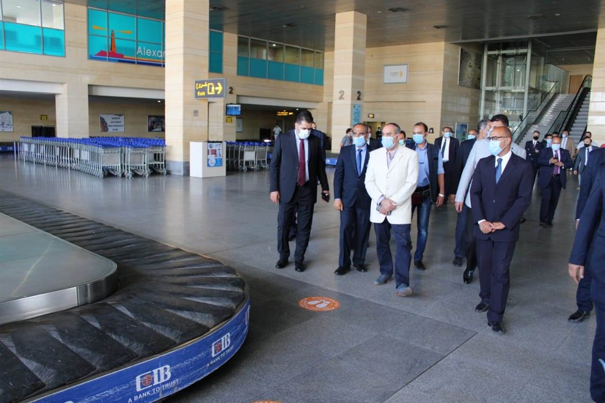 وزير الطيران يتفقد مطار برج العرب ويتابع أعمال التطوير بالمطار