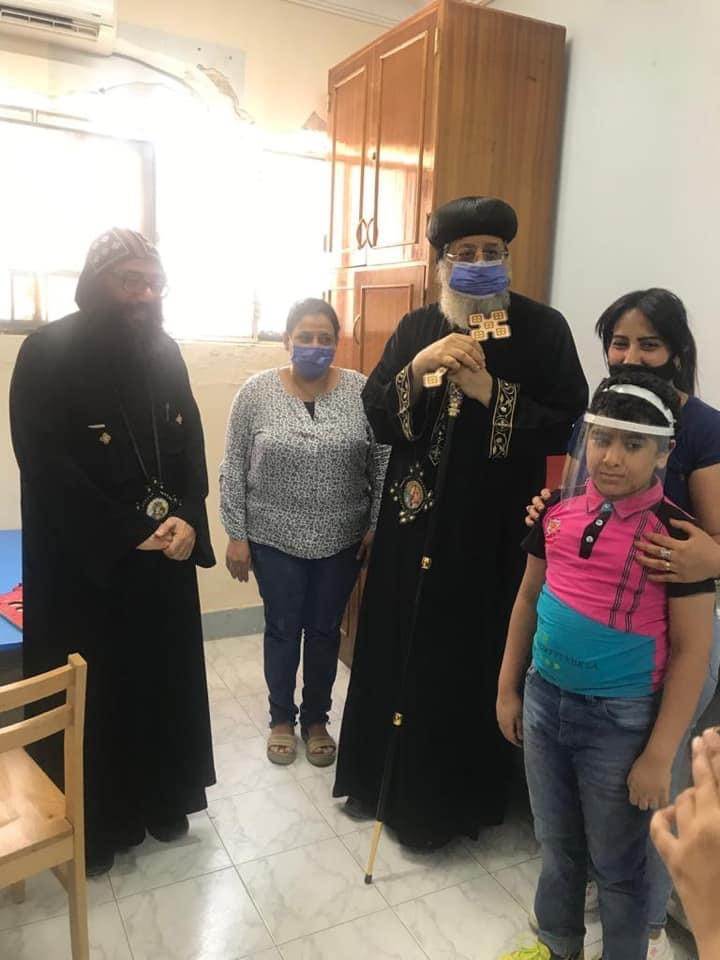 والتقى قداسته مجموعة من الأطفال، الذين يتلقون جلسات تخاطب وتنمية مهارات، ودار بينه وبينهم حديث ودي.