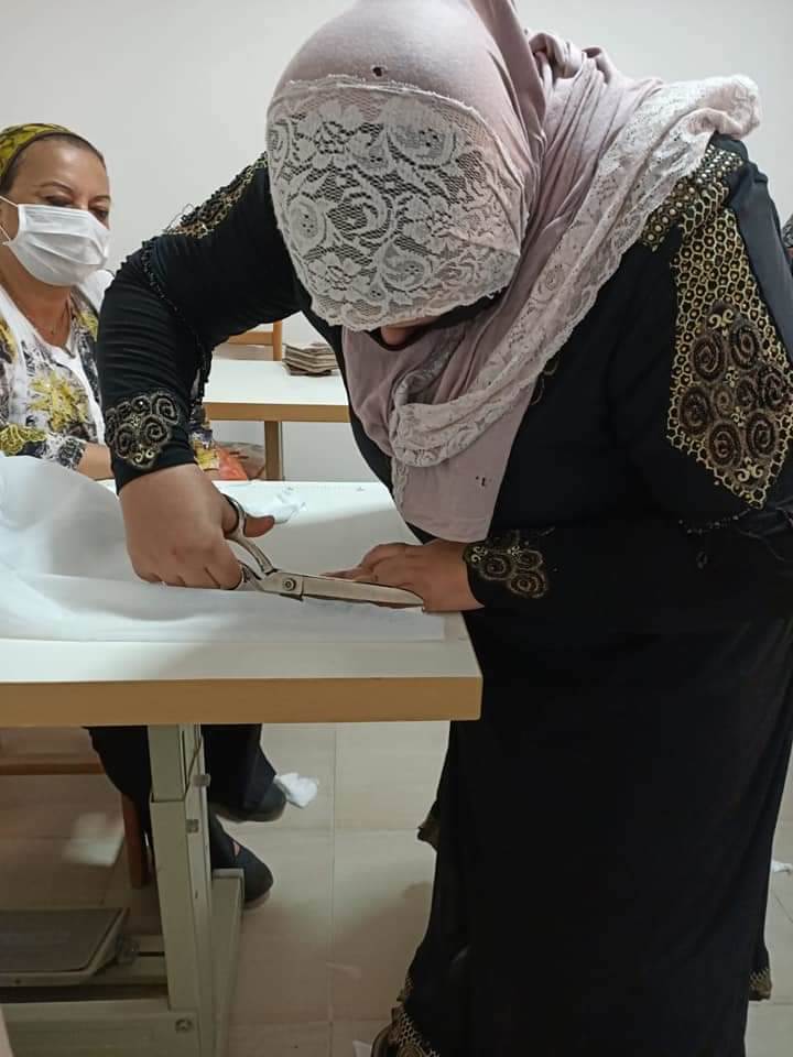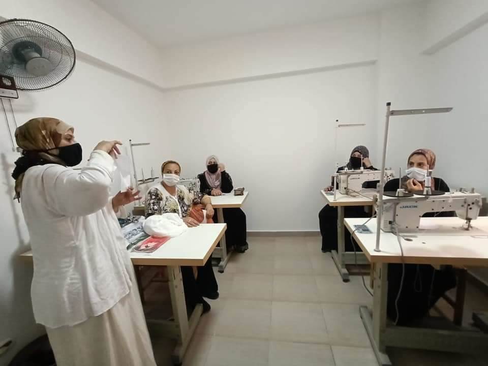 وتم تصنيع عشر كمامات، بعد تدريب كل سيدة على مراحل خياطة الكمامة، لتتمكن من خياطتها في منزلها.