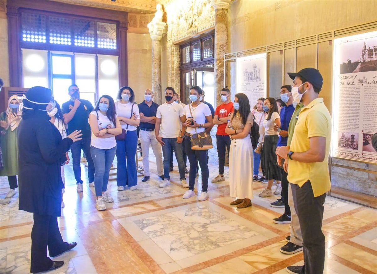وقام الشباب بجولة تفقدية داخل القصر، وشاهدوا عددًا كبيرًا من التماثيل والقطع الأثرية النادرة، واستمعوا إلى شرح مفصل من أحد خبراء الآثار عن تاريخ القصر، كما شاهدوا فيلمًا تسجيليًا، يتناول الأحداث التاريخية، والشخصيات الرئيسية التي أسست ضاحية مصر الجديدة، إضافة إلى حقائق علمية عن القصر وتاريخ مدينة الشمس.