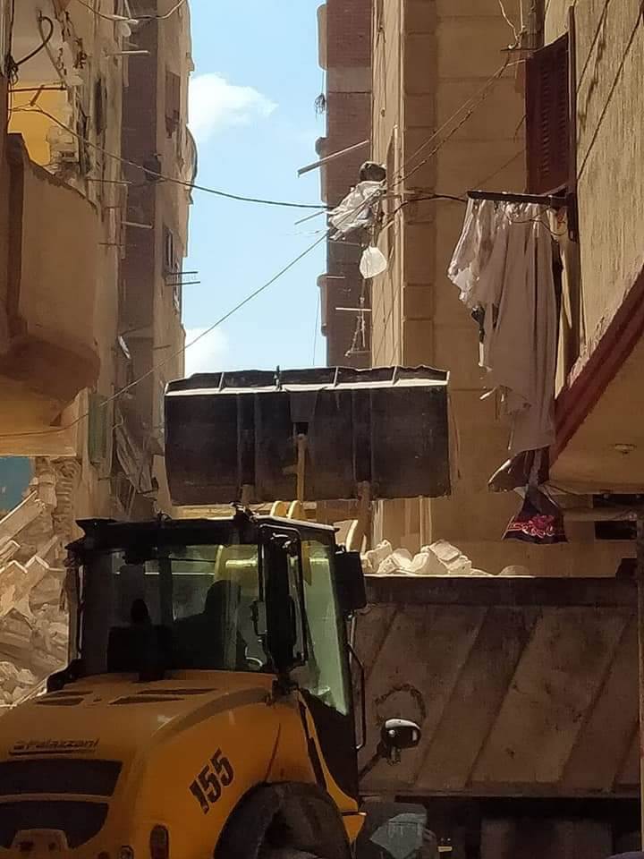 قامت إدارة الرصد البيئي بالحي بأعمال رفع 20 طن رديم، ناتج من تهدم عقار بشارع طمان مع شارع شفا .