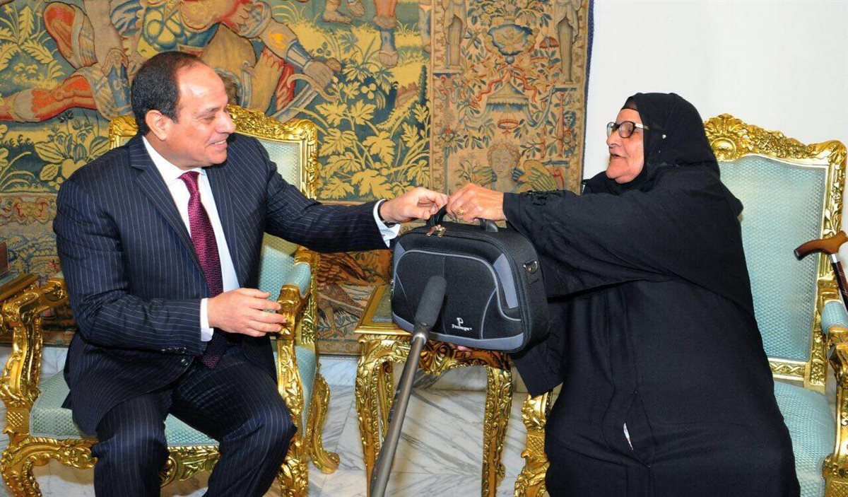 وكرمها الرئيس بمناسبة عيد الأم، وبعد مقابلتها وجه السيسي التحية لها، وخلال وقائع الندوة التثقيفية الـ16 التي نظمتها القوات المسلحة في إطار احتفالات مصر وقواتها المسلحة بيوم الشهيد والمحارب القديم، إنه قال لها “إنتي شرفتي الرجال والسيدات”.