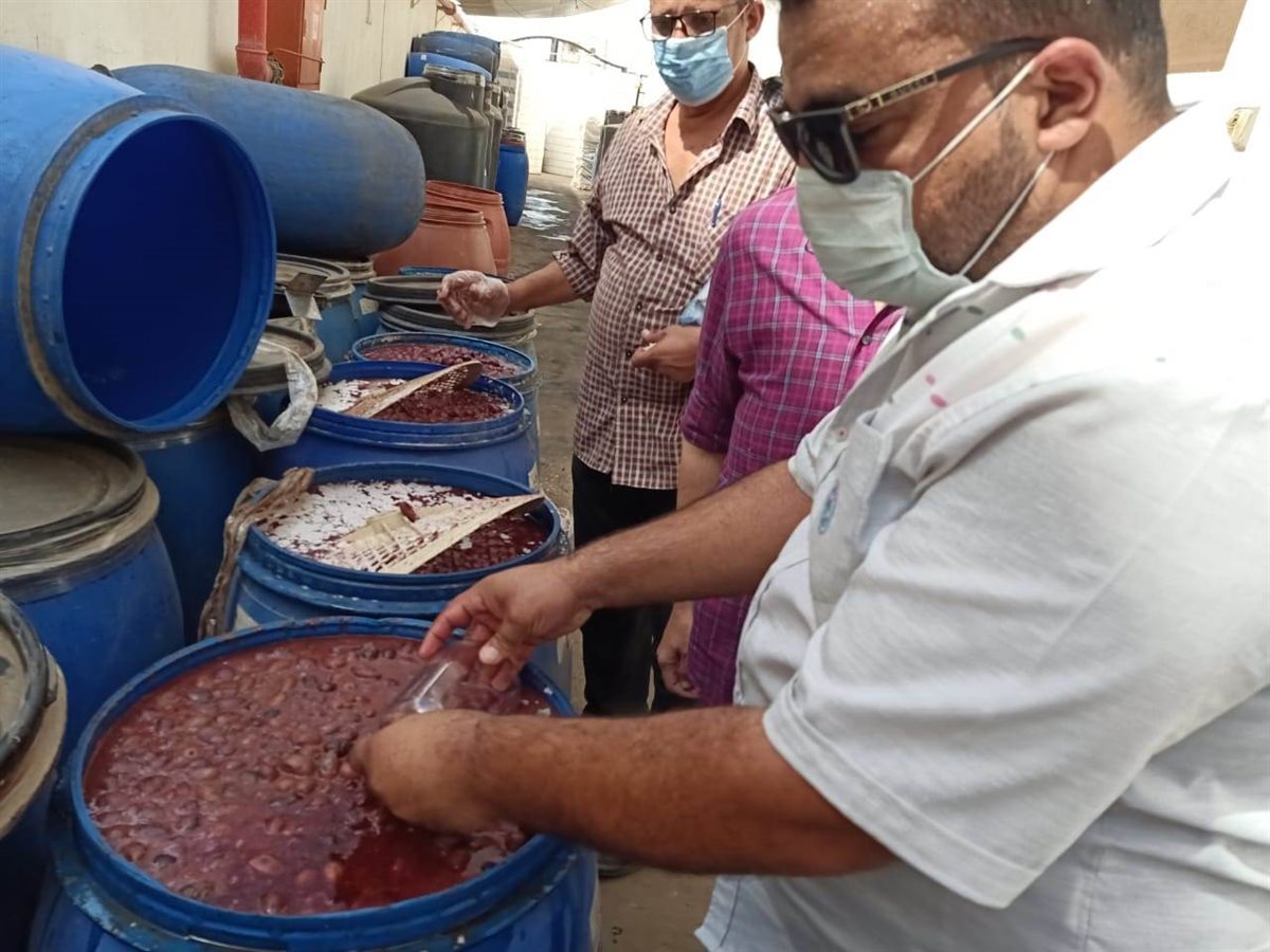 وكانت الزيارة الثانية لمصنع مخللات، وتم ضبط 2.890 طن مخللات، لوجود عفن ودود داخل البراميل، وضبط ٥٠٠ كجم ملح لتحجره، وتم إعدام ٦٨٠ كجم مخللات لوجود تغير في خواصها الطبيعية، وسحب ٥ عينات، وتحرير ٦ محاضر جنحة صحية.