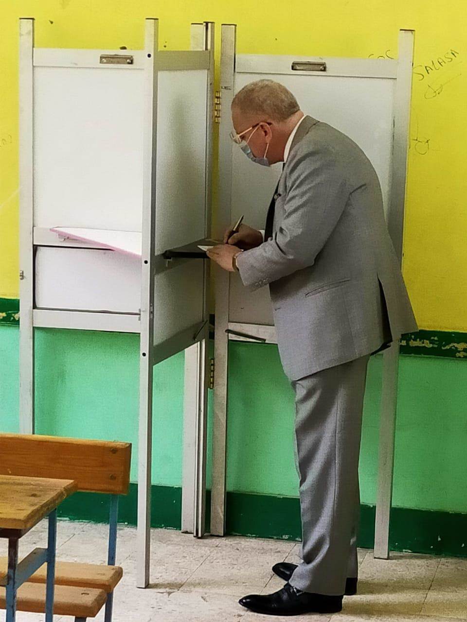 "مجاهد" يدلي بصوته بلجنته فى القناطر الخيرية