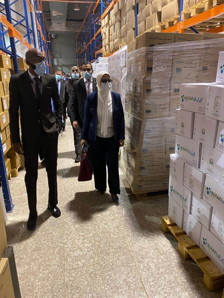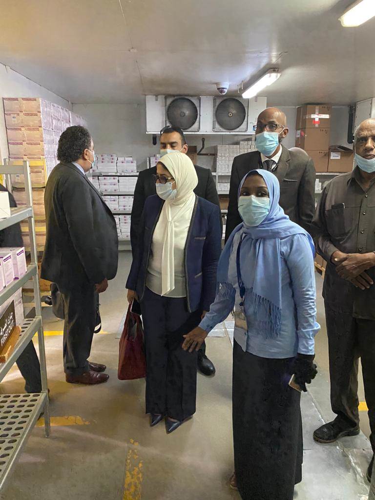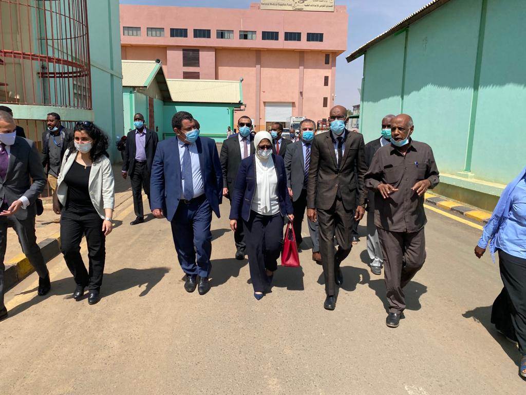 وعقب انتهاء جلسة المباحثات، اصطحب وزير الصحة السوداني، الدكتورة هالة زايد، في جولة تفقدية لأقسام الصندوق القومي للإمدادات الطبية التابع لوزارة الصحة السودانية (مخازن التموين الطبي)، كما تفقدت شحنات المساعدات التي وصلت إلى دولة السودان على مدار اليومين الماضيين، والتي شملت مساعدات إغاثية ومستلزمات طبية، وأدوية والمستلزمات الجراحية.
