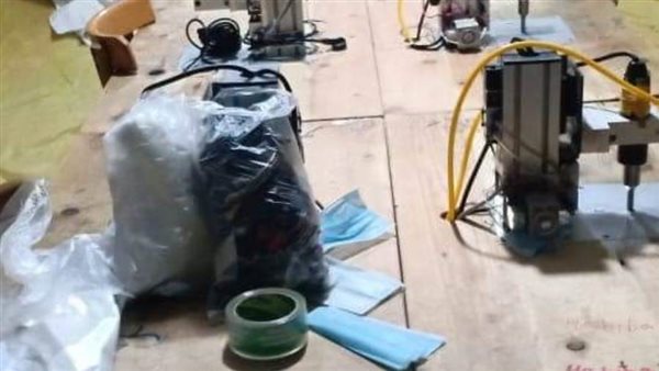 وتم متابعة المصنع عن بعد حتى تم فتح باب المكان وتم التحفظ على أدوات التصنيع المستخدمة، والخامات والمنتج من الكمامات بعدد واحد خط إنتاج و3 ماكينات تبنيط و12000 كمامة منتج نهائي تام الصنع، ومعد للبيع في كراتين، وعدد 20000 كمامة تحت التصنيع، وخامات إنتاج 20 لفة قماش أبيض، و20 لفة قماش أزرق، وزن اللفة 12 كجم.