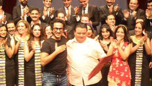 كرم المخرج خالد جلال رئيس قطاع شؤون الإنتاج الثقافي، والمشرف العام على مركز الإبداع الفني، الفنان "أحمد حلمي"، في مركز الإبداع الفني بدار الأوبرا المصرية.