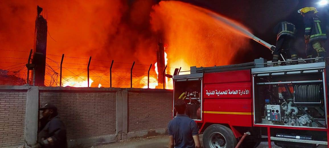 الحماية المدنية: تبريد حريق مخزن سكر بالخانكة لمنع تجدد النيران