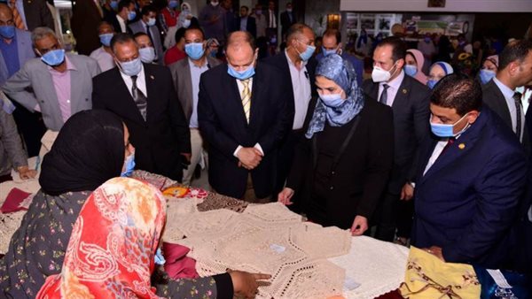 كما تفقدت الوزيرة والمحافظ والوفد المرافق لهما؛ معرض الحرف التراثية ومنتجات الجمعيات الأهلية والأسر المنتجة بديوان عام المحافظة، والذي يضم منتجات الأسر المنتجة تمثل الصناعات اليدوية والحرفية والتراثية، مثل الكليم والسجاد والخيامية والمفروشات المنزلية والمنسوجات والجلود والخزف والحلى والاكسسوارات والنقش على النحاس، وغيرها من الحرف اليدوية، التي تعكس صورة التراث المصري، فضلاً عن تفقد معرض لمنتجات الجمعيات الأهلية من ملابس ومشغولات يدوية وأقمشة ومفروشات والمخبوزات "حلويات" وإعادة تدوير المخلفات المختلفة وذلك بمشاركة جمعيات أهلية شريكة.