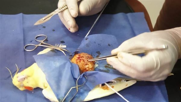 تمكن فريق من كلية الطب البيطري بجامعة المنصورة، من إجراء جراحة دقيقة لطائر زينة، لاستئصال ورم بحجم كبير من منطقة الصدر.