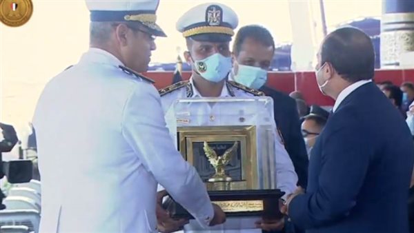 رئيس أكاديمية الشرطة يهدي الرئيس السيسي هدية تذكارية خلال الاحتفال بتخريج دفعة 2020