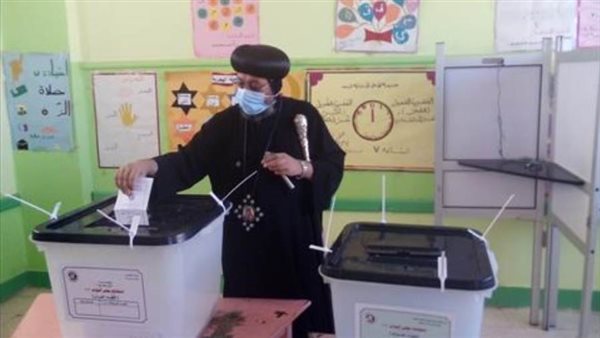 حرص الأنبا ارسانيوس أسقف الوادى الجديد والواحات، على التصويت في انتخابات مجلس النواب، اليوم السبت، بلجنة مدرسة الأمل بمدينة الخارجة بدائرة الخارجة وباريس .