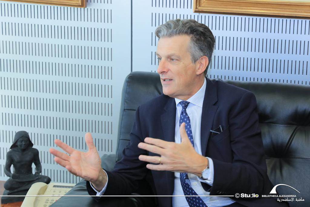وتحدث مدير مكتبة الإسكندرية والسفير البريطاني خلال اللقاء عن العديد من القضايا الثقافية والتاريخية بين البلدين، إلى جانب التعاون بين مؤسسات ومعاهد البلدين خاصة في قطاعي الثقافة والتعليم.