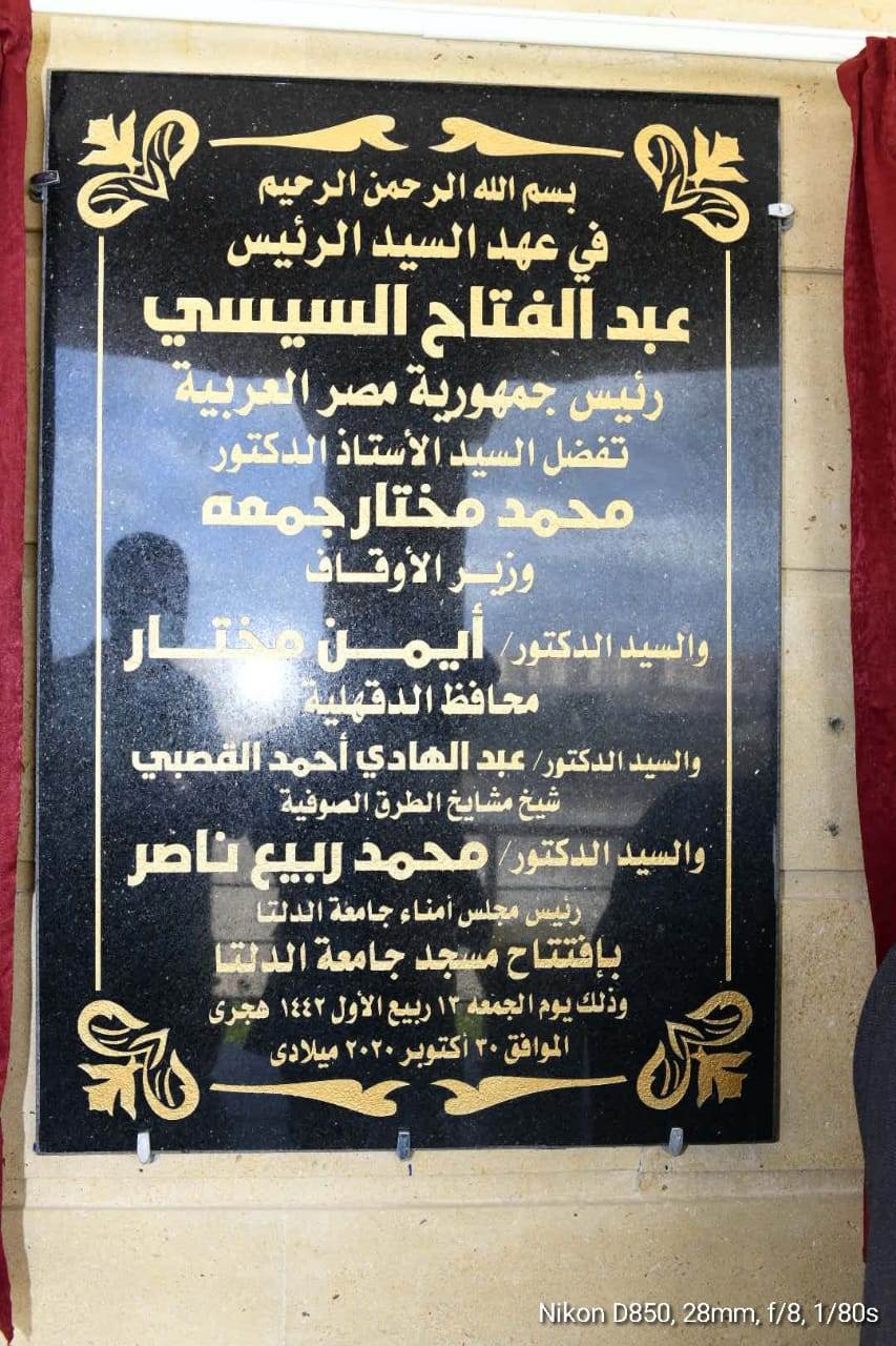 افتتح الدكتور محمد مختار جمعة، وزير الأوقاف، والدكتور عبد الهادي القصبي، شيخ مشايخ الطرق الصوفية، والدكتور أيمن مختار، محافظ الدقهلية، مسجد جامعة الدلتا، وأدوا صلاة الجمعة.