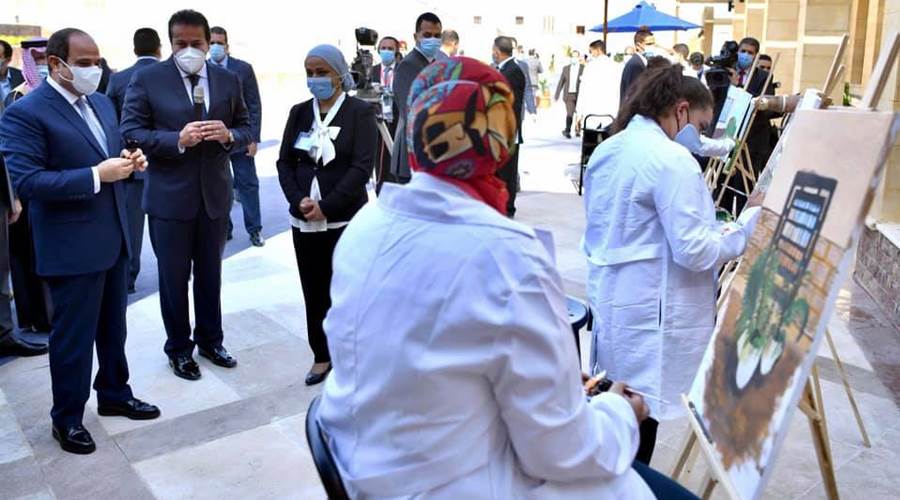 واستمع الرئيس السيسي، خلال جولته التفقدية بمدينة شرم الشيخ لافتتاح جامعة الملك سلمان وعدد من المشروعات الأخرى، إلى شرح من وزير التعليم العالي والبحث العلمي الدكتور خالد عبدالغفار والقائمين على إنشاء الجامعة لكل ما يخص أقسام الجامعة من كليات مختلفة، والمباني السكنية للطلاب ولأعضاء هيئة التدريس.