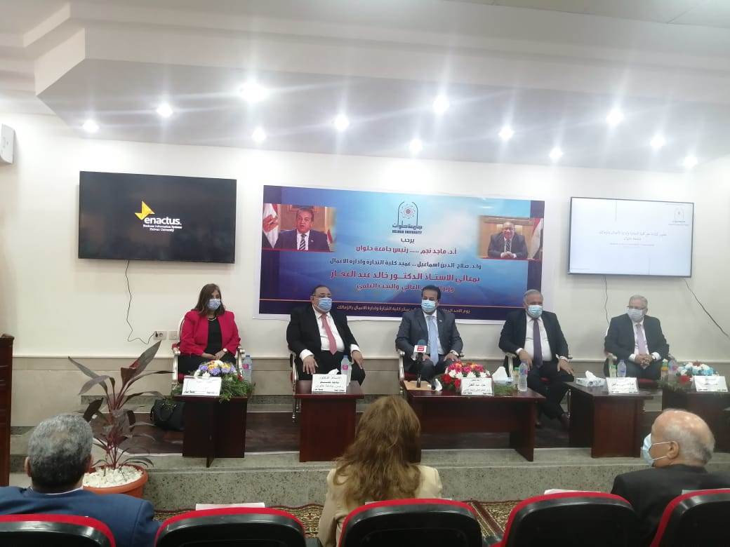 افتتح الدكتور خالد عبد الغفار، وزير التعليم العالي والبحث العلمي، والدكتور ماجد نجم، رئيس جامعة حلوان، أعمال التطوير والتحديث بكلية التجارة وإدارة الأعمال بالزمالك، بحضور الدكتورة منى فؤاد عطية، نائب رئيس الجامعة للدراسات العليا والبحوث، والدكتور حسام رفاعي، نائب رئيس الجامعة لشؤون خدمة المجتمع وتنمية البيئة، والدكتور صلاح الدين اسماعيل، عميد الكلية، وعضوي مجلس الشيوخ الدكتور عبد الحي عبيد، والدكتورة سهير عبد السلام، والدكتور أشرف رضا الرئيس التنفيذى لمجمع الفنون والثقافة وعدد من عمداء الكليات.