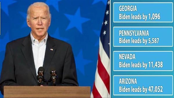 وفي ولاية أريزونا ، يتقدم بايدن بـ47 ألف صوت مع احتساب 200 ألف آخرين وفي نيفادا ، يتقدم بايدن بـ 11438 مع بقاء حوالي 50000 للعد بينما ولاية كارولينا الشمالية من المرجح أن تذهب إلى ترامب ، لكنه لن يحدث فرقًا في توزيع مقاعد الكلية الانتخابية.