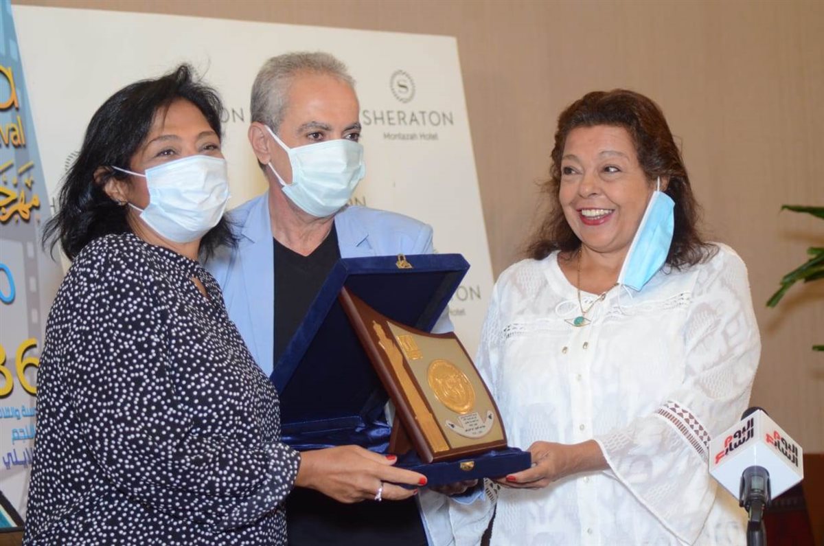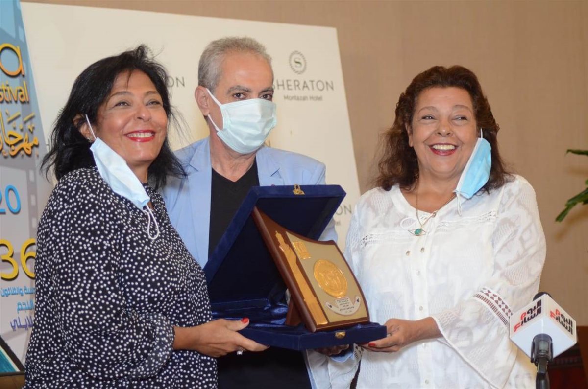 وقام الامير أباظة بتسليم لطيفة فهمي ونيللي فهمي درع تكريم المهرجان.