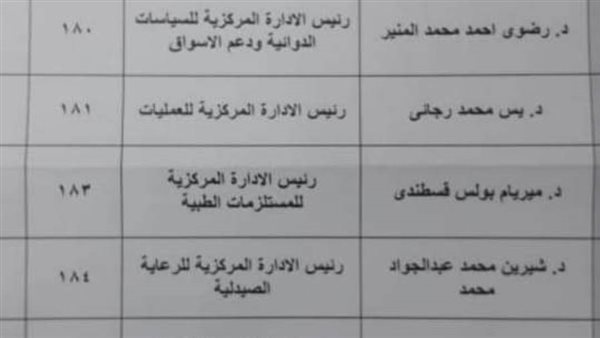 7. الدكتورة شيرين محمد عبد الجواد محمد رئيس الإدارة المركزية للرعاية الصيدلية.