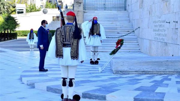 الرئيس السيسي يضع إكليلًا من الزهور على قبر الجندي المجهول في أثينا