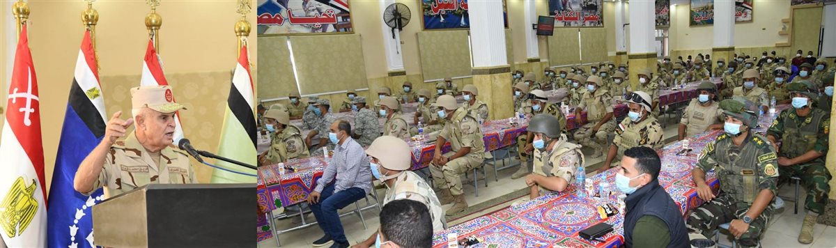 ولفت إلى الدعم الكامل من القيادة العامة للقوات المسلحة لتوفير سبل الحياة الكريمة لأهالي سيناء الذين وقفوا جنباً إلى جنب مع رجال القوات المسلحة في التصدي والقضاء على الإرهاب وعودة الحياة إلى طبيعتها لمدن شمال سيناء وإستعادة الأمن والأمان وتهيئة المناخ الملائم للاستثمار والتنمية الشاملة بسيناء والحفاظ على إنجازات ومقدرات الوطن .
