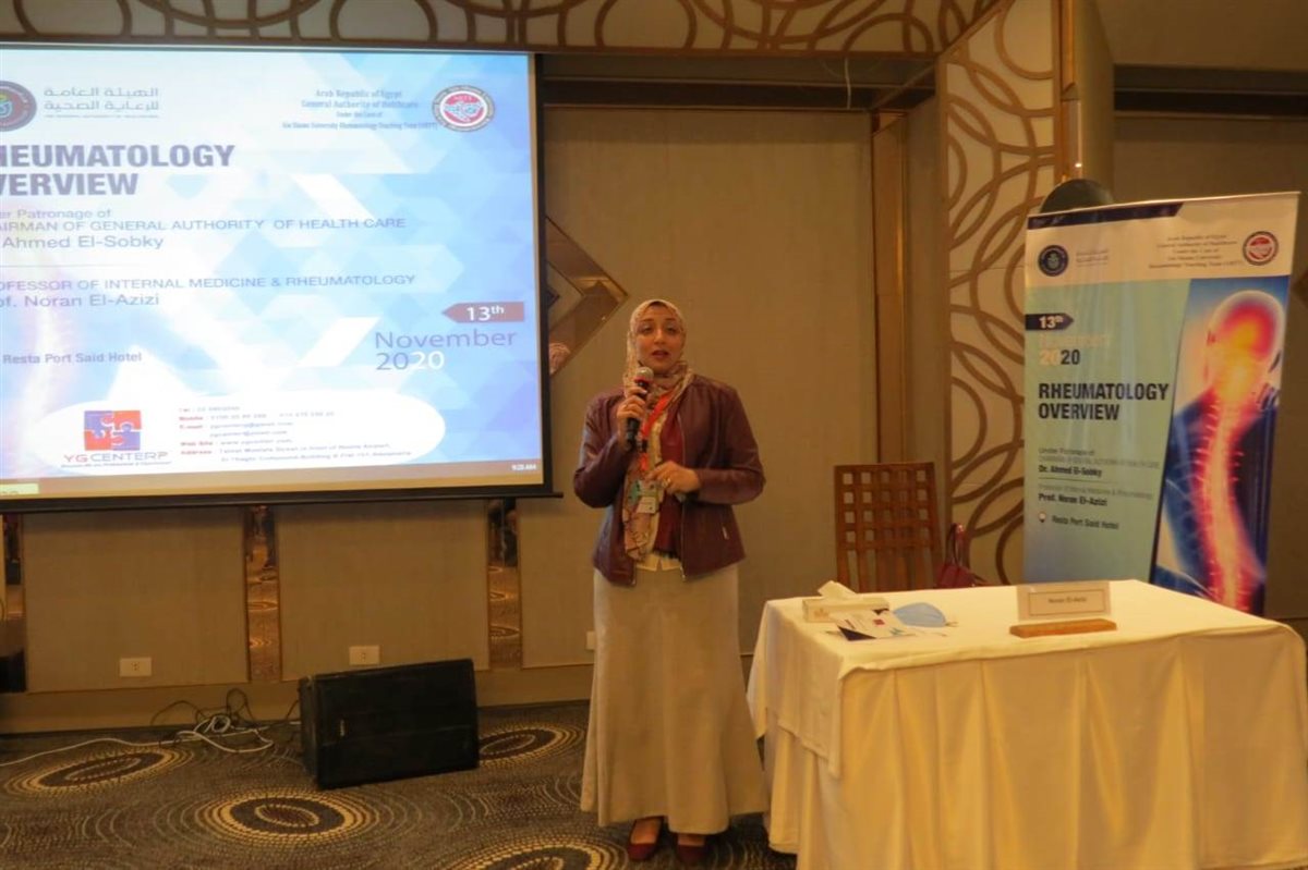 وأضافت أن التدريب يشمل أيضًا الأمراض الروماتيزمية وكوفيد19، الأمصال والتطعيمات في الأمراض الروماتيزمية، الأدوية المستخدمة للتحكم في أعراض الأمراض الروماتيزمية وتأثيره على الحمل الخصوبة، إلى جانب التدريب العملي على مجسم لتعلم كيفية تشخيص أمراض الروماتويد على الجزء السفلي والعلوي للمريض.