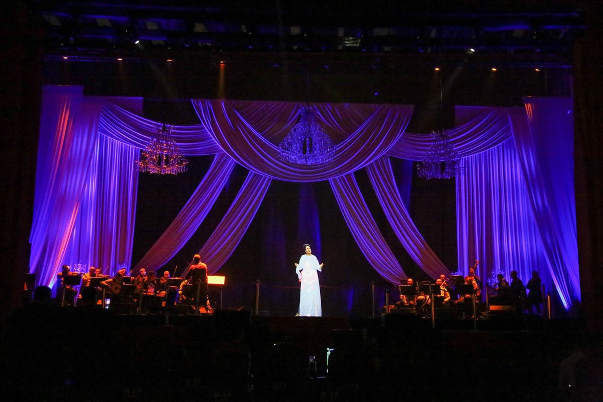 بينما تُقدم صوت مصر الخالد أم كلثوم على المسرح بتقنية الهولوجرام، عددا من أغنياتها الشهيرة منها "أنت عمري"، و"ألف ليلة وليلة"، و"سيرة الحب"، و"لسه فاكر"، و"الاطلال".