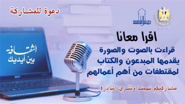ضمن المبادرة التي أطلقتها الدكتورة إيناس عبد الدايم وزيرة الثقافة المصرية تحت عنوان "الثقافة بين إيديك" يشارك المجلس الأعلى للثقافة بأمانة الدكتور هشام عزمي في الفعاليات الثقافية التي ينظمها المجلس أونلاين ومن بينها سلسلة حلقات ثقافية عربية بعنوان "اقرأ معانا".