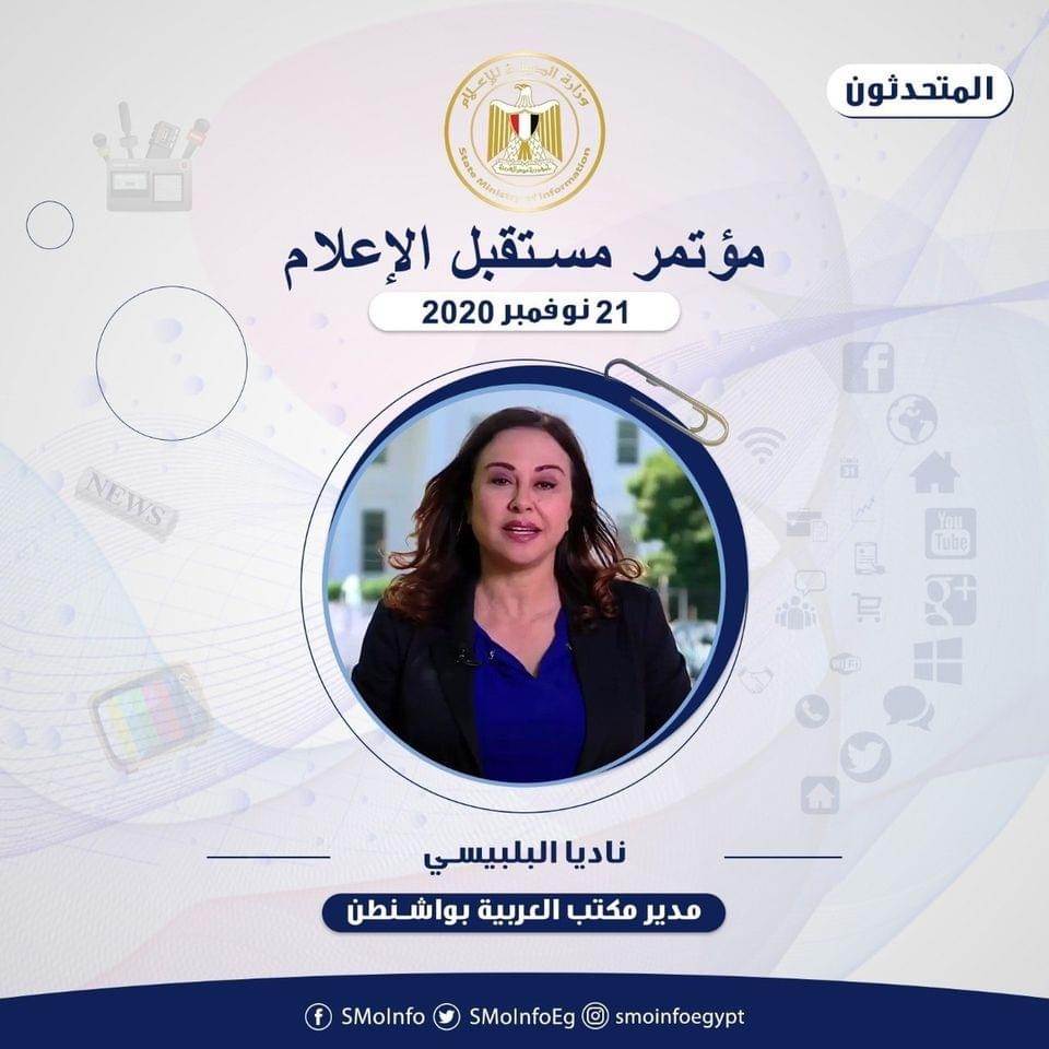 ثم تحدثت نادية البلبيسي مراسل قناة العربية بواشنطن وأكدت أن وسائل التواصل الاجتماعي تمثل تحدياً للإعلام المرئي والمكتوب لكن المرئي بشكل أكبر؛ فالإعلام التقليدي والمرئي اضطر أن يواكب الاعلام الجديد حيث إن غالبية النشرات الإخبارية تنقل عن طريق تويتر، تلخيص ما يقوله الضيوف علي الهواء على تويتر.