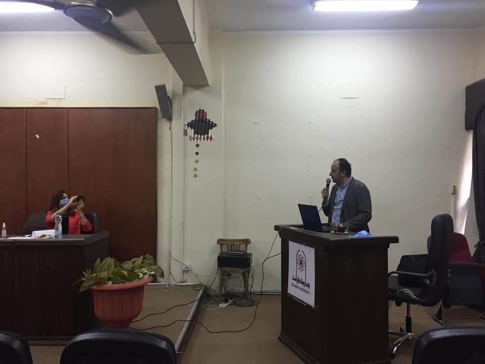 نظمت كلية الآداب بجامعة حلوان ندوة توعوية بعنوان، فيروس كورونا وعلاقته بالإنفلونزا الموسمية، تحت رعاية الدكتور ماجد نجم، رئيس الجامعة، والدكتورة مها حسنى، القائم بعمل عميد الكلية، حاضر فيها الدكتور ولاء زين العابدين، استشاري الأمراض الصدرية بكلية الطب بجامعة حلوان.