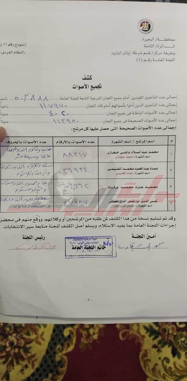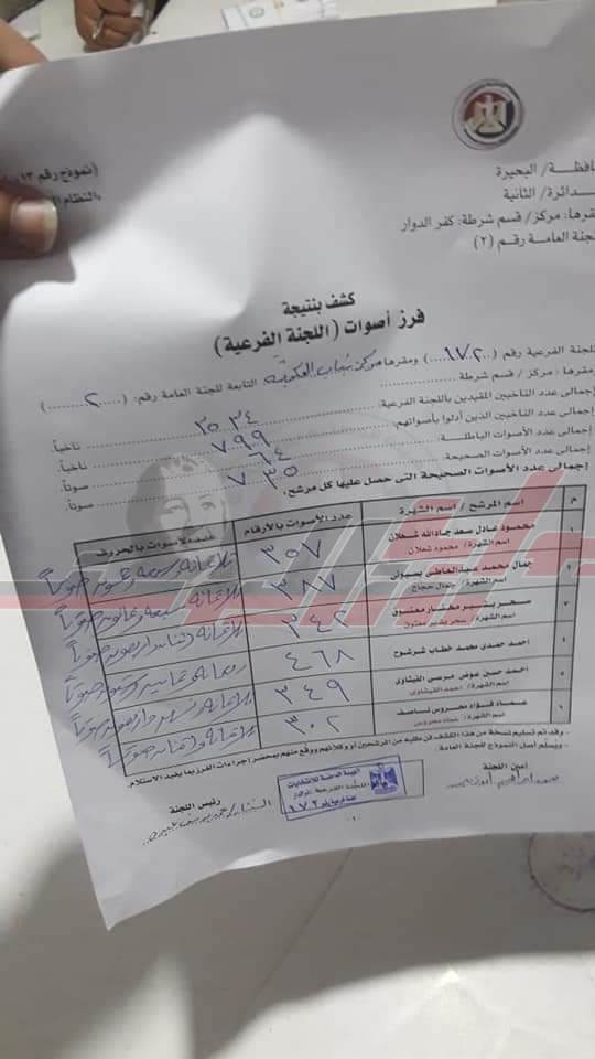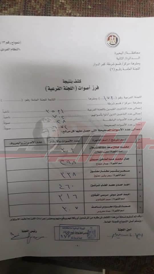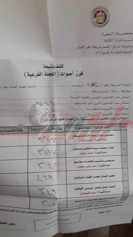 وكانت اللجنة العامة المشرفة على جولة الإعادة بالمرحلة الأولى لانتخابات مجلس النواب، أعلنت البيان الإحصائي للنتائج الأولية لفرز الأصوات بالدائرة التاسعة ومقرها مركز كوم حمادة بالبحيرة، وتضمن البيان الإحصائي حصول المرشح عاصم عبد العزيز مرشد على 51630 صوتا، والمرشح أحمد حلمي الشيشيني على 95464 صوتًا، والمرشح طلبة أحمد ثابت النحال على 55010 صوتًا، ومحمد سمير بلتاجي على 43324 صوتًا.