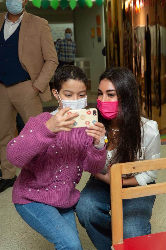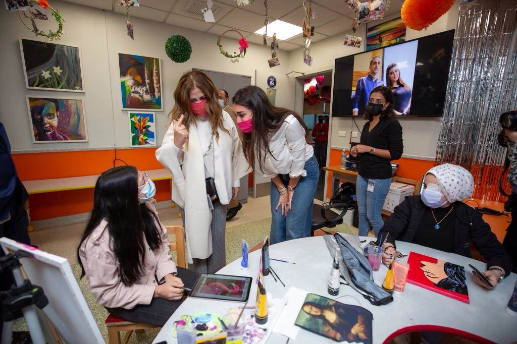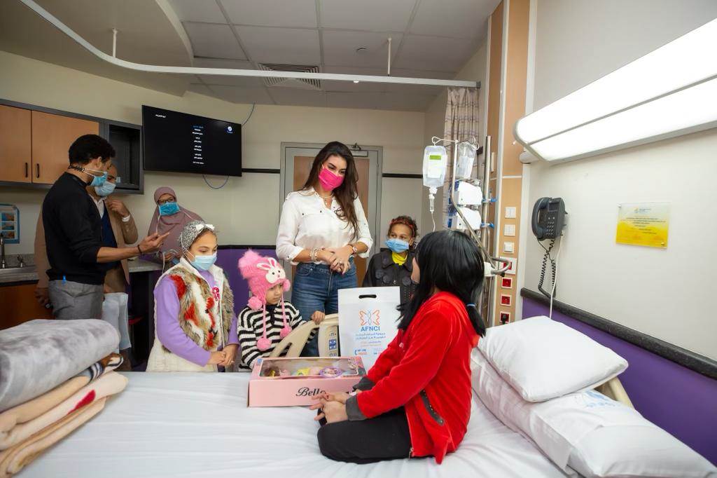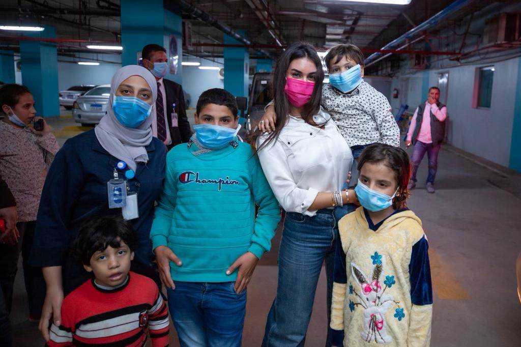 ونظم المستشفى استقبالا لائقا بالفنانة، شارك فيه عدد من الأطفال، وكان في استقبالها د. شريف ابوالنجا، المدير التنفيذي لمجموعة 57357، مدير عام المستشفى، وتم عرض فيديو لها يتضمن لقطات من زياراتها السابقة للمستشفى.
