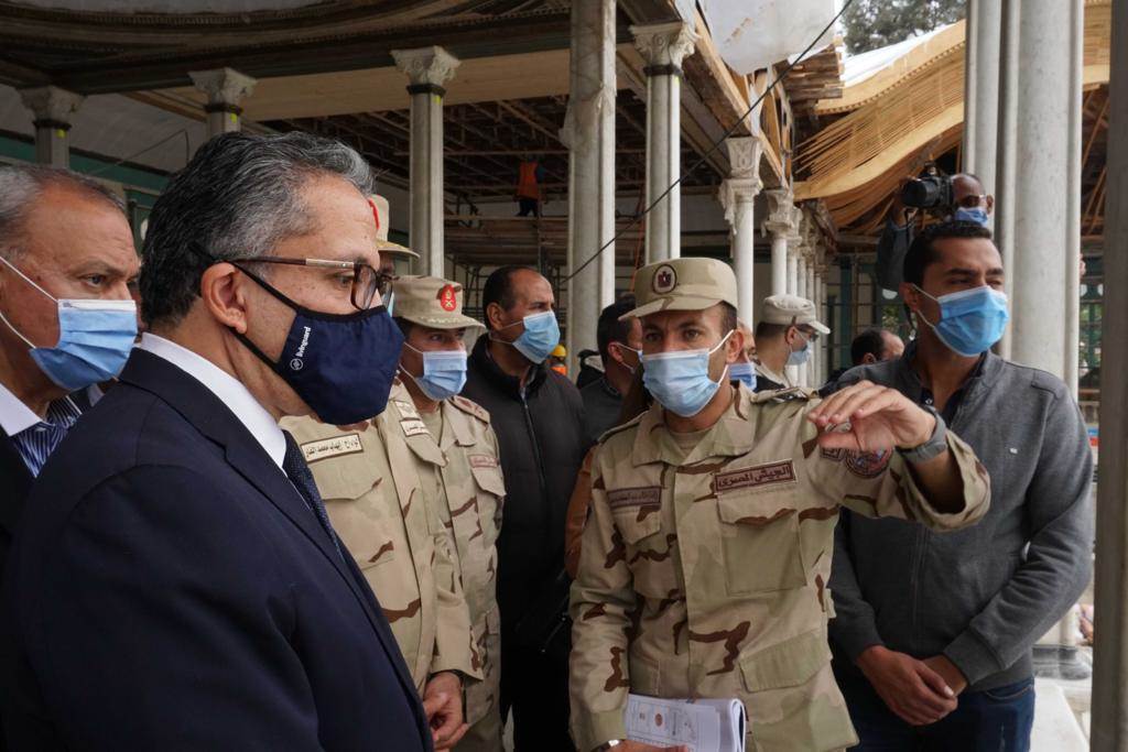وانتهت جولة وزير السياحة والآثار ورئيس الهيئة الهندسية للقوات المسلحة، داخل متحف محمد علي بشبرا، حيث انضم إليهما اللواء عبد الحميد الهجان محافظ القليوبية، لتفقد مشروع ترميم القصر بالكامل.