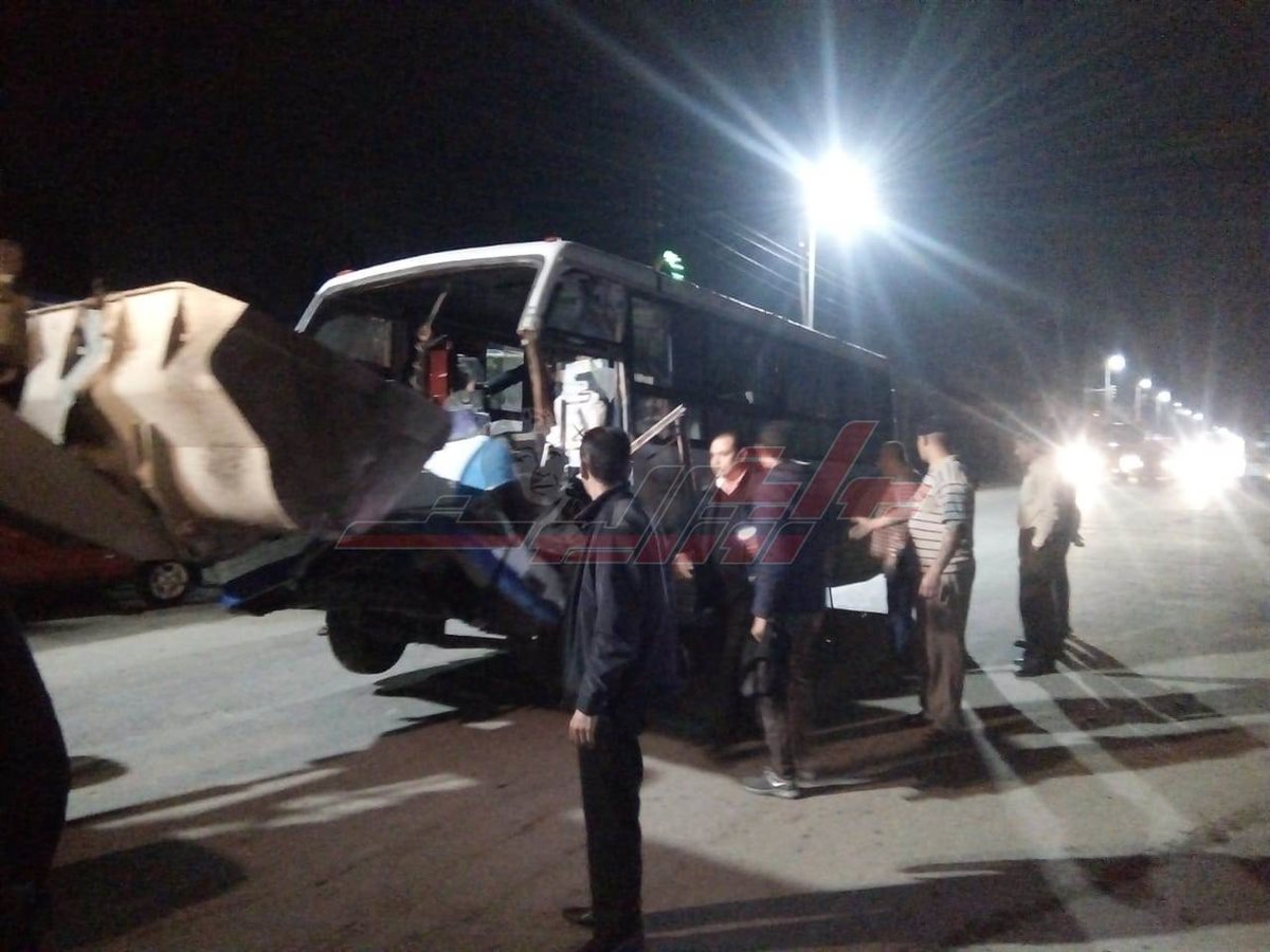 وعلي الفور انتقل ضباط مركز شرطة دمنهور لمكان الحادث، و تبين وقوع تصادم بين أتوبيس ركاب وسيارة ميكروباص وأسفر الحادث عن إصابة ، السيد محمد حبشي سلطان، 20 سنة ، سالم ابراهيم، 35 سنة، خالد سلطان محمد حسني، 50 سنة ، عادل منصور أبو قورة، 44 سنة ، عماد رجب الجمال، 34 سنة ، إمام ربيع فؤاد صالح، 18 سنة "، وتم نقل المصابين لمستشفي دمنهور التعليمي لتلقي العلاج اللازم، وجاري تحرير المحضر اللازم.