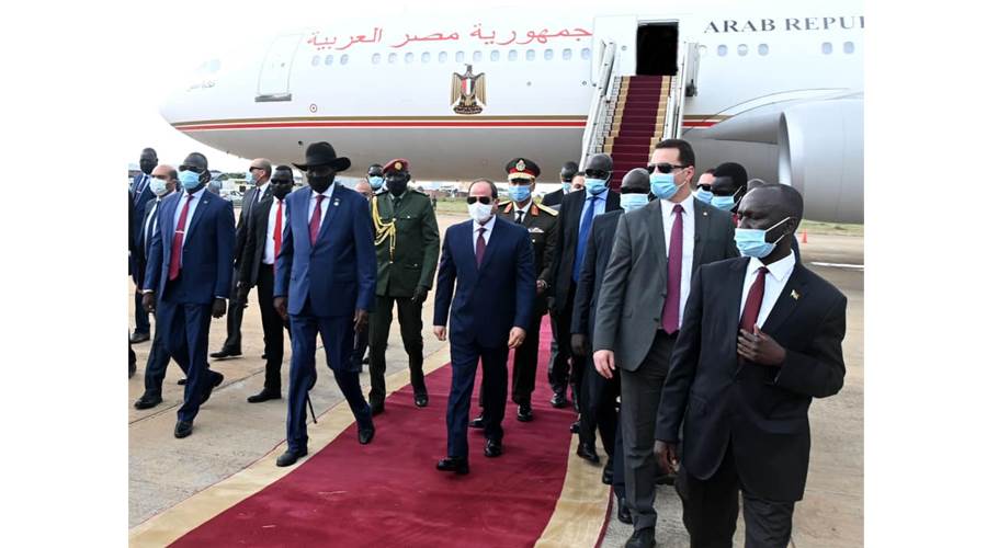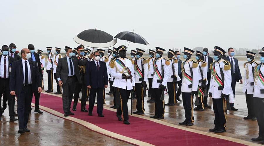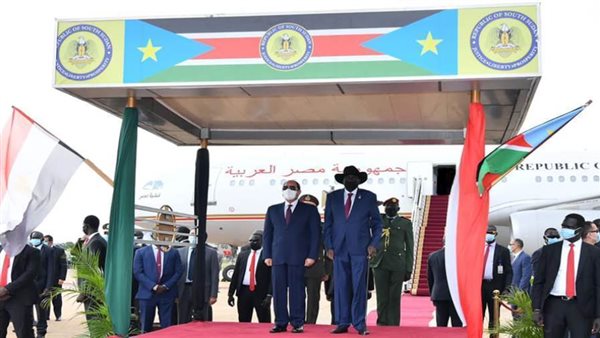 وصل الرئيس عبد الفتاح السيسي إلى جنوب السودان، حيث استقبله الرئيس سلفا كير، بمطار جوبا الدولي.