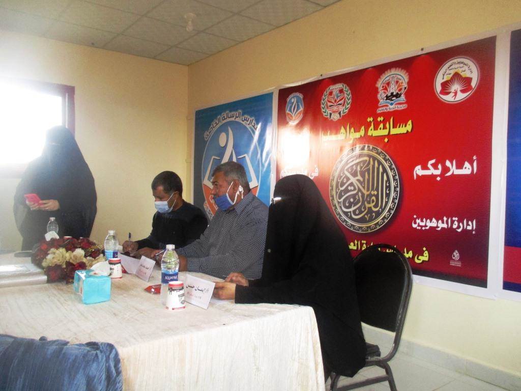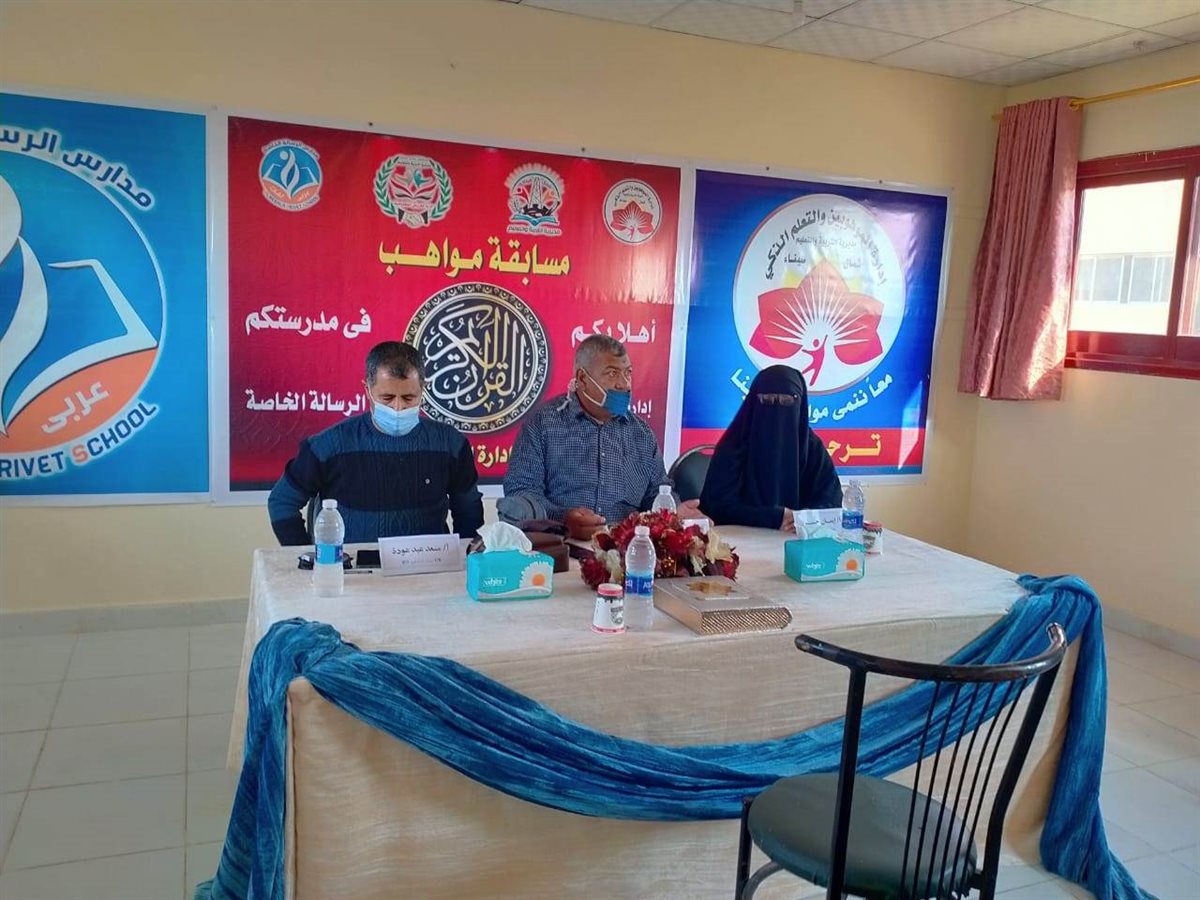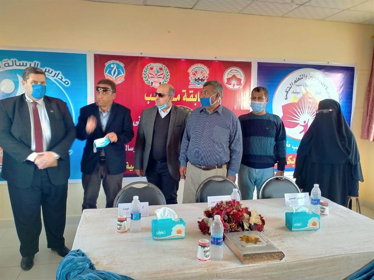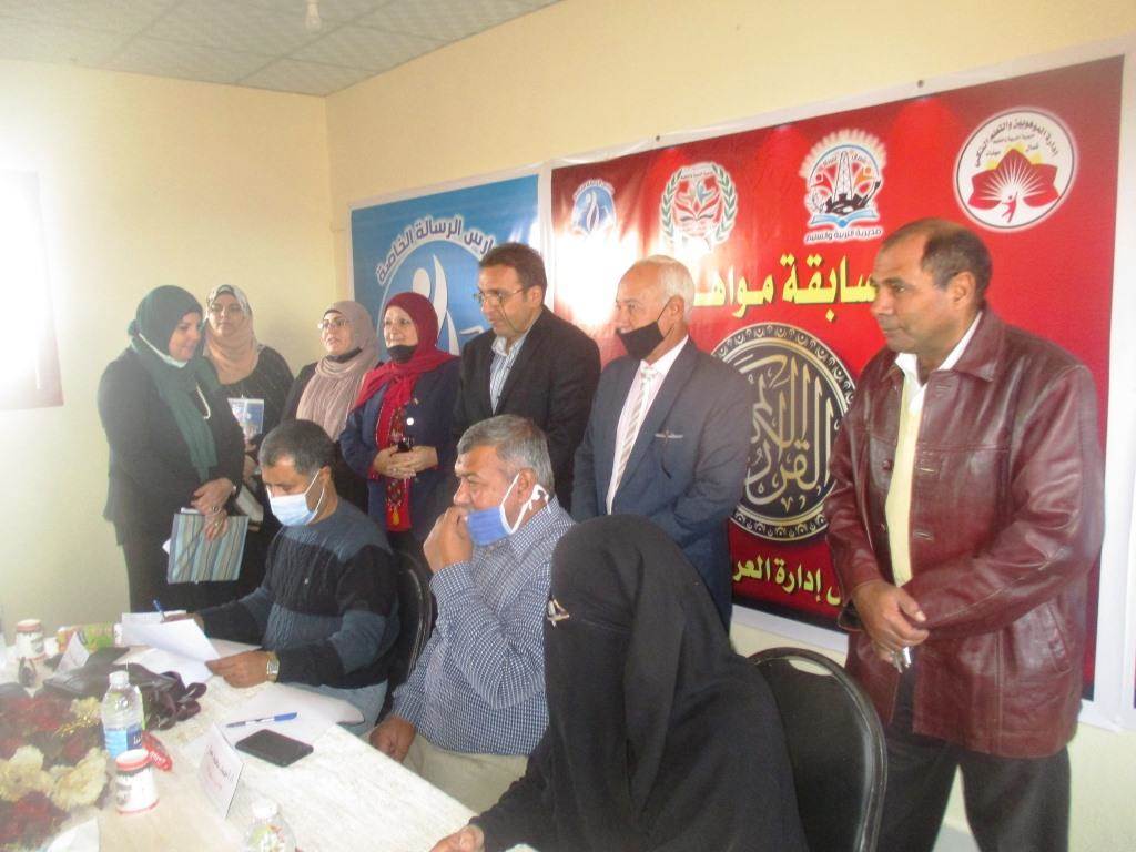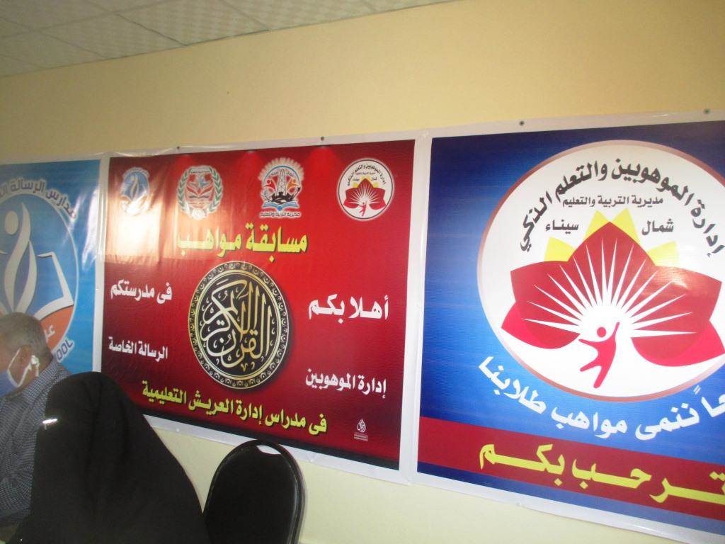 افتتح اليوم حمزة رضوان وكيل وزارة التربية والتعليم بشمال سيناء .. يرافقه الدكتور شاكر رفعت شاكر رئيس مجلس ادارة مدرسة الرسالة .. مسابقة مواهب القرآن الكريم ، والتي تنفذها إدارة الموهوبين والتعلم الذكى بمديرية التربية والتعليم بالتعاون مع مدرسة الرسالة بالعريش .. تحت رعاية الدكتور محمد عبد الفضيل شوشة محافظ شمال سيناء وحمزة رضوان وكيل وزارة التربية والتعليم بالمحافظة ، وباشراف إدارة الموهوبين والتعلم الذكى بمديرية التربية والتعليم بالمحافظة .